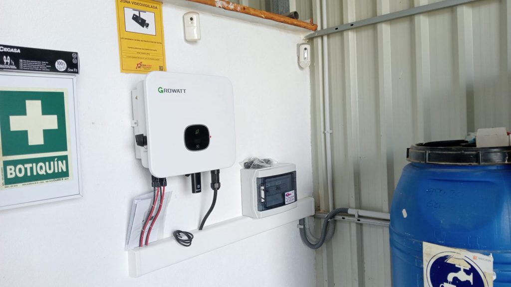 Recientemente finalizamos la puesta en marcha de una planta fotovoltaica en el término municipal de Pechina. Fueron 18 módulos de 570 w de potencia fotovoltaica pico y 10 kw en inversor que proveen de electricidad a una finca agrícola.